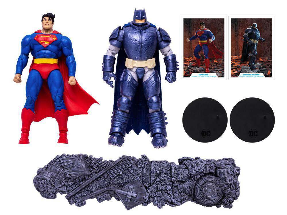 Questo fantastico 2-pack vede Batman e Superman scontrarsi e prende le mosse dalle pagine del fumetto The Dark Knight Returns, capolavoro di Frank Miller